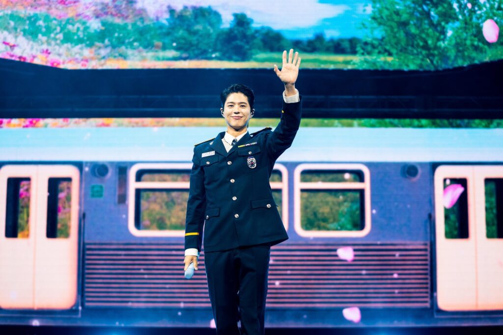 The fan meeting was beautifully structured like a train journey that took fans through three thematic “stations.” At the B-Cut Station, Bo-gum shared personal snapshots—including a touching photo of the bouquet fans had presented upon arrival, as well as a candid morning selfie. He said, “You guys are all my flowers… Please do not prepare or buy these flowers,” a comment that truly reflected how he treasures their genuine support.
