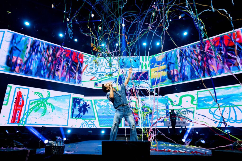 He began the night in a faux police uniform, greeting his beloved audience with heartfelt charm. Opening the show with the Korean songs “Annyeong” and “Just Fine,” Bo-gum set a warm and uplifting tone. Then, with genuine affection, he greeted fans directly: “Hello, everyone! Hello, Philippines! Thank you so much for your support and love. How have you been? It’s been a long time, right?” followed by, “I really, really missed you guys! I’m so happy to see you all!”