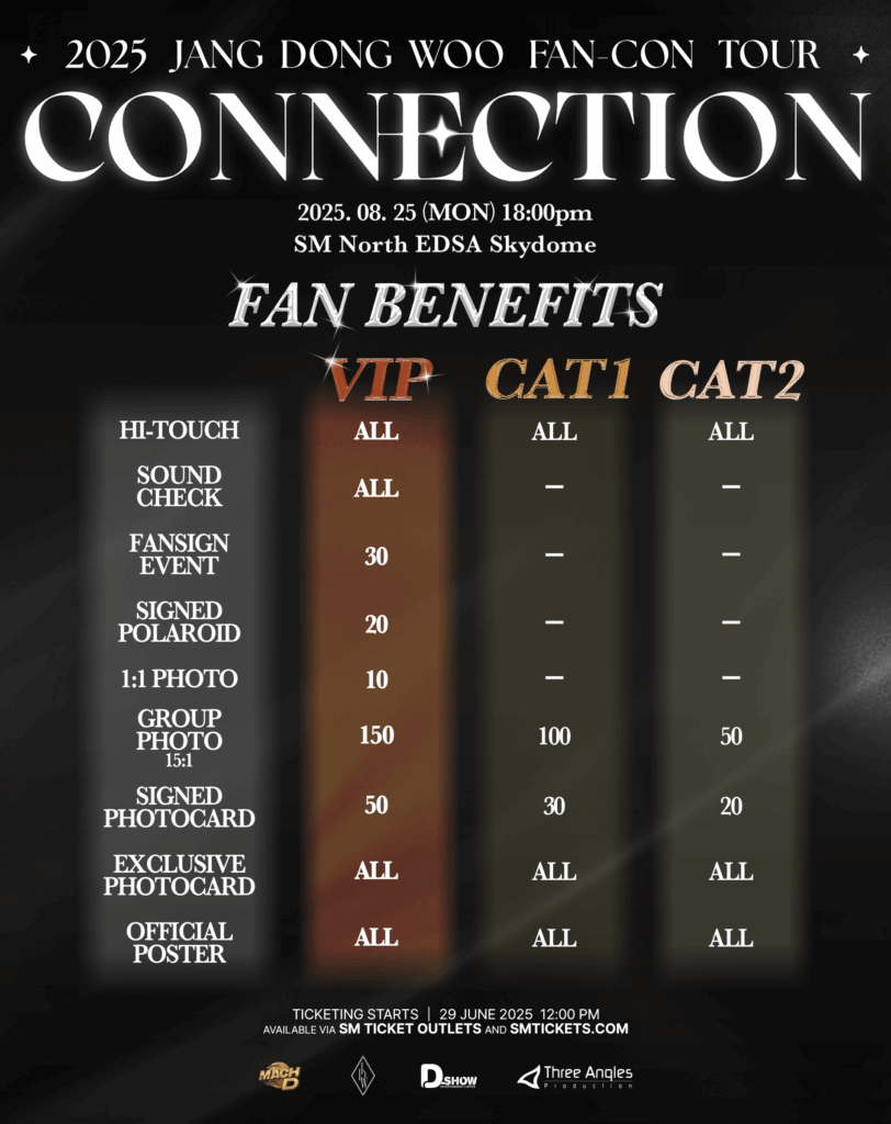 The 2025 JANG DONG WOO FAN-CON TOUR <CONNECTION> IN MANILA is organized by D-SHOW, and managed by Three Angles Production.