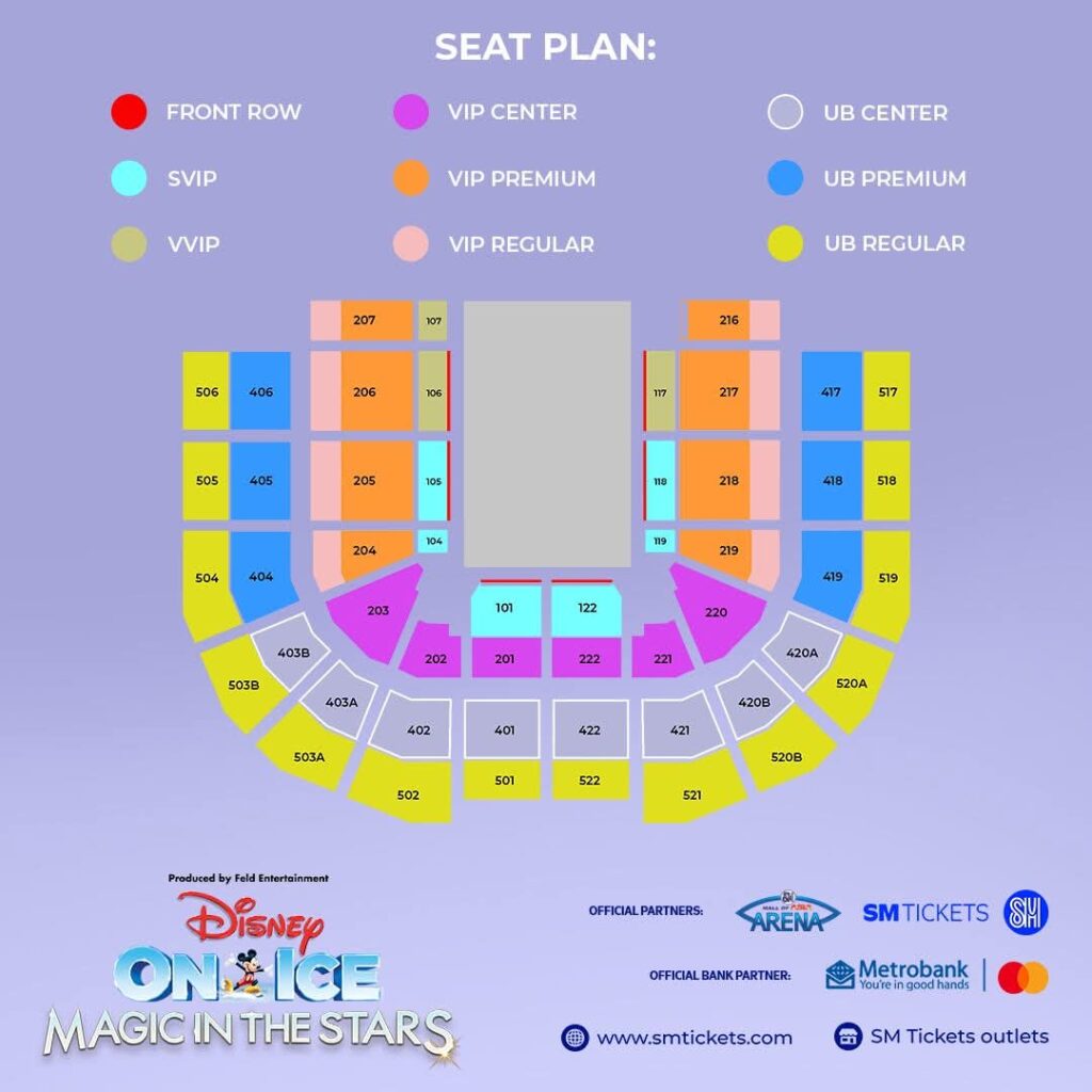 To purchase tickets online, just log in to www.smtickets.com and create an account. If you are already a member, just proceed to the Disney On Ice show page on www.smtickets.com so you can view available seats and choose from the complete list of ticket prices.