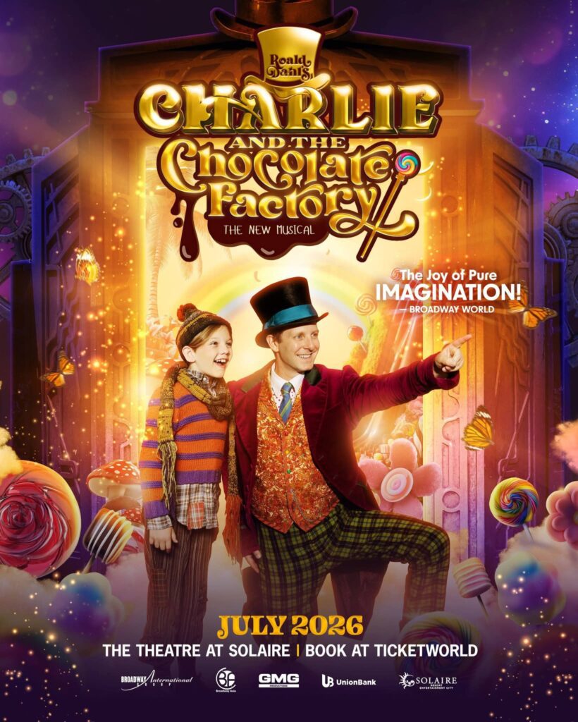 The magical world of Willy Wonka is set to enchant Filipino audiences for the very first time! The Broadway musical adaptation of Roald Dahl’s beloved classic Charlie and the Chocolate Factory will premiere in Manila at The Theatre at Solaire from July 8 to July 26, 2026.