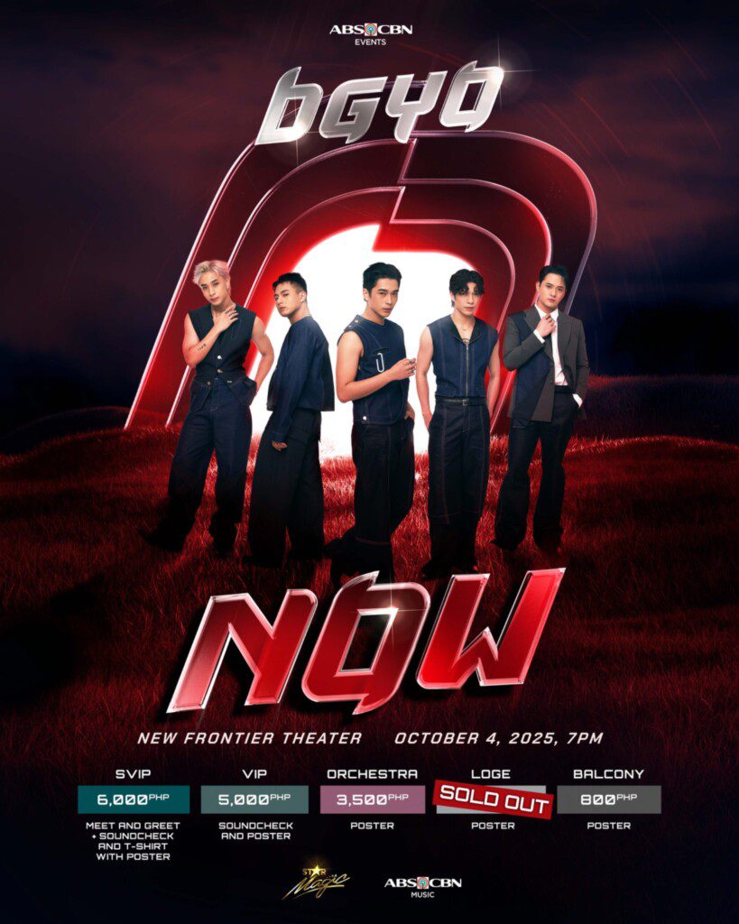Tickets to “BGYO: The First Solo Concert” are available via ticketnet.com.ph priced at P6,000 (SVIP), P5,000 (VIP), P3,500 (orchestra), P1,000 (loge), and P800 (balcony).