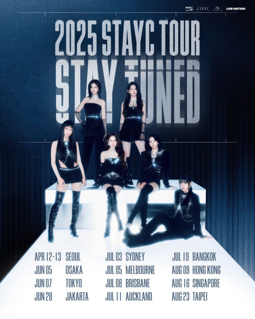 STAYC continue to bring their dynamic energy to their world tour, STAY TUNED, which kicked off in Seoul on 12th and 13th April, followed by shows across Japan, Jakarta in June. The tour will continue throughout July and August with stops in Australia, New Zealand and other cities in Asia. Ticket details here.