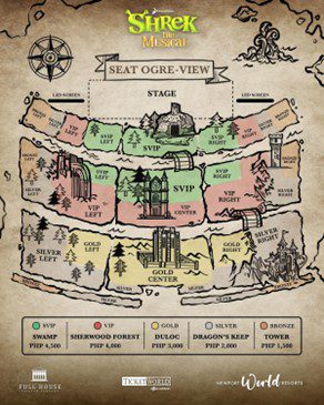 Catch Shrek The Musical starting October 31, 2025, at the Newport Performing Arts Theater. Additional November show dates are now open. Tickets are available at Ticketworld, Newport World Resorts Box Office, and Helixpay: PHP 4,500 (SVIP), PHP 4,000 (VIP), PHP 3,000 (GOLD), PHP 2,000 (SILVER), and PHP 1,500 (BRONZE). For inquiries, contact Customer Care at 7908-8888 or info@fhtcentertainment.com.